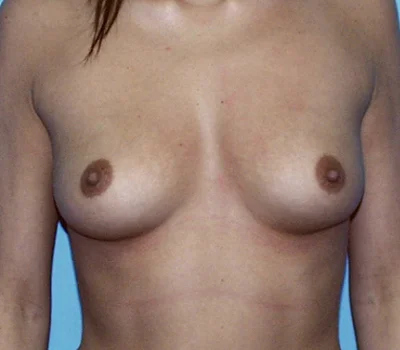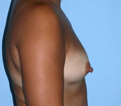Preoperatively, this patient was 5ft.5in. and weighed 115 lbs. Dr. Mills performed breast augmentation, using 420cc saline implants, with placement under the muscle. Dr. Mills used the transaxillary or armpit incision. Additionally, Dr. Mills reduced the length of this patients nipples, which were elongated.